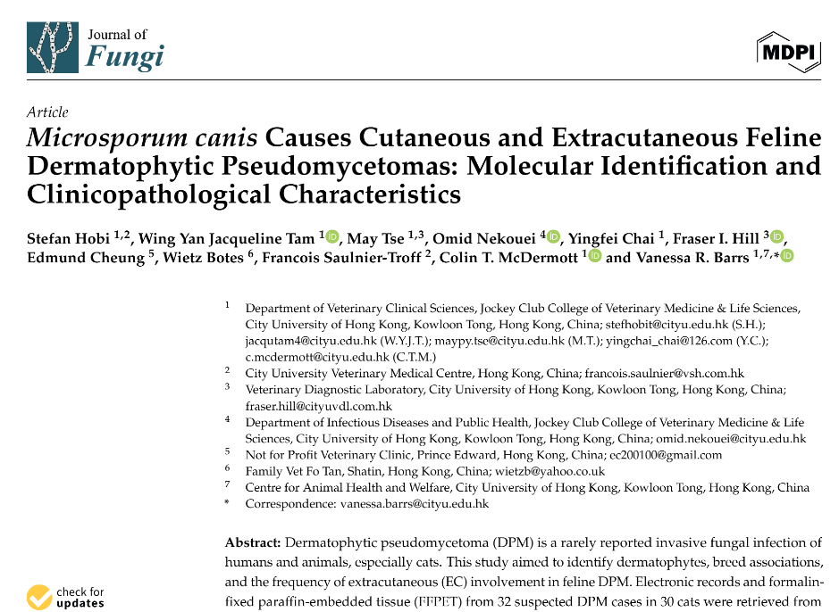Stefan Hobi, Wing Yan Jacqueline Tam, May Tse, Omid Nekouei, Yingfei Chai, Fraser I. Hill, Edmund Cheung, Wietz Botes, Francois Saulnier-Troff, Colin T. McDermott and Vanessa R. Barrs